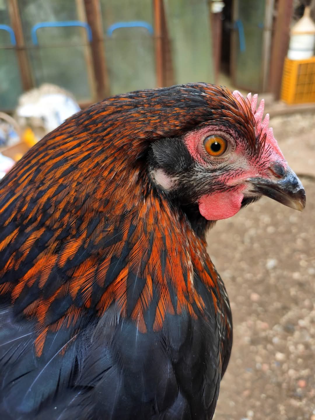 Testa rame, le piccole penne che ricoprono l’orecchio il più possibile simili al colore della testa. Mantellina rame. Dorso nero. Spalle e copritrici delle ali rosso cremisi, da evitare infiltrazioni nere. Lanceolate della groppa rame, alcune lanceolate, specialmente nella parte bassa, posso avere, più o meno marcata, una fiamma nera. Piumaggio in generale nero; fasce e triangolo dell’ala assolutamente nerointenso. Petto nero o leggermente macchiato di rosso. Becco corno. Tarsi nel gallo biancastri con sfumature grigie. Nella gallina grigio scuro.Piumino: grigio nero.