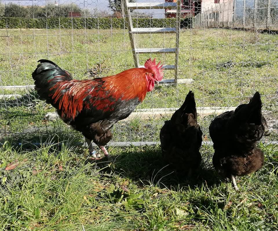 Gallo: triangolo dell’ala bruno; tracce di colore diverso dal nero nelle remiganti; mantellina giallo paglia. Gallina: disegno bruno sul piumaggio.