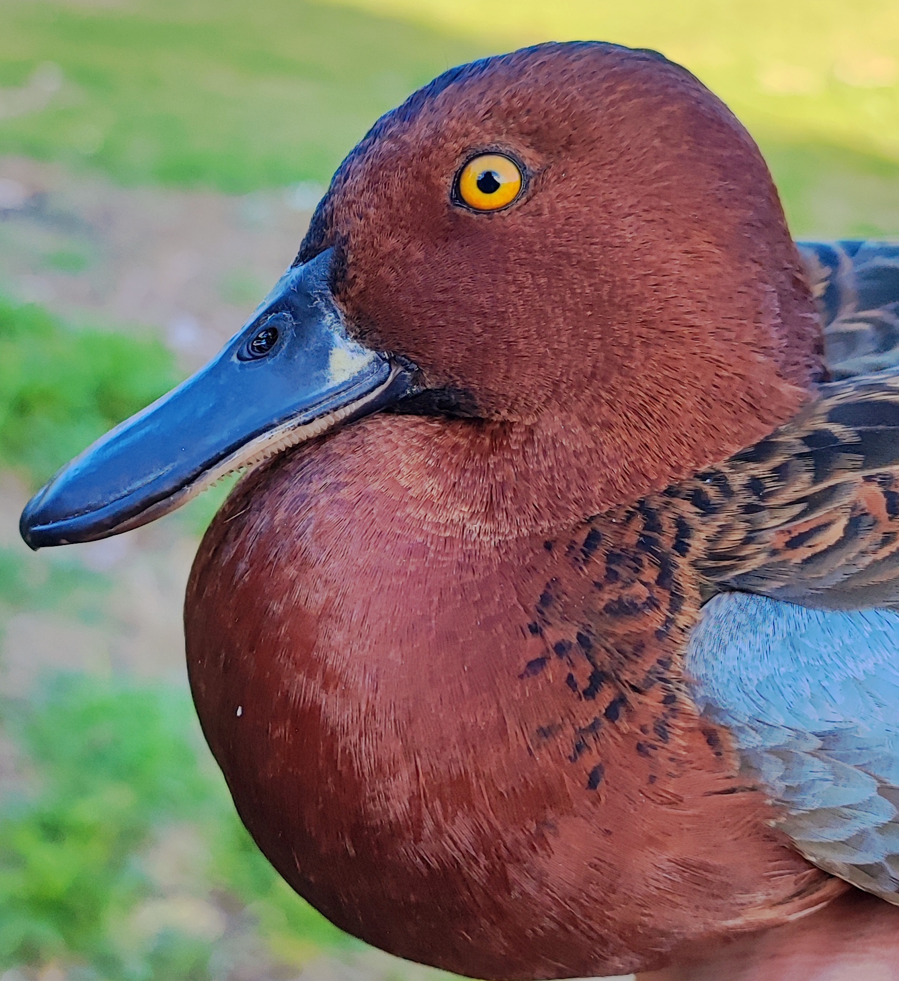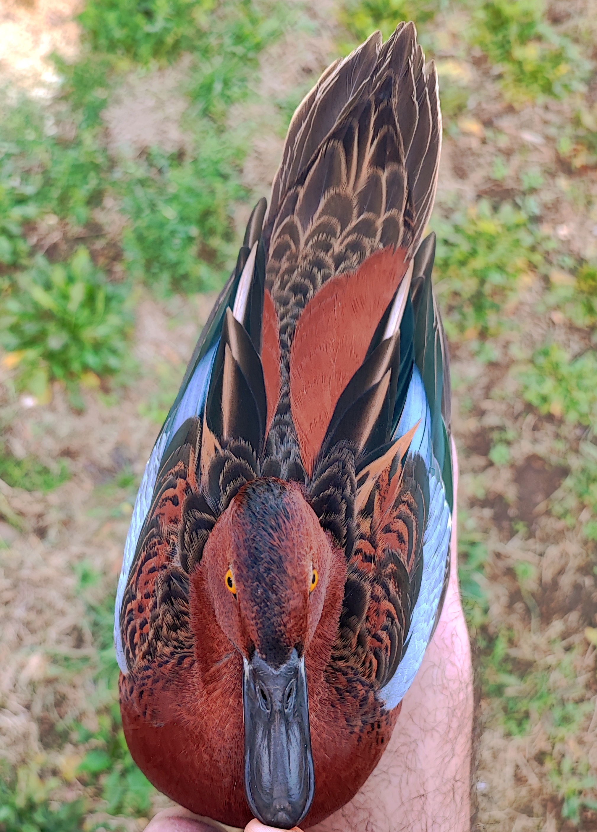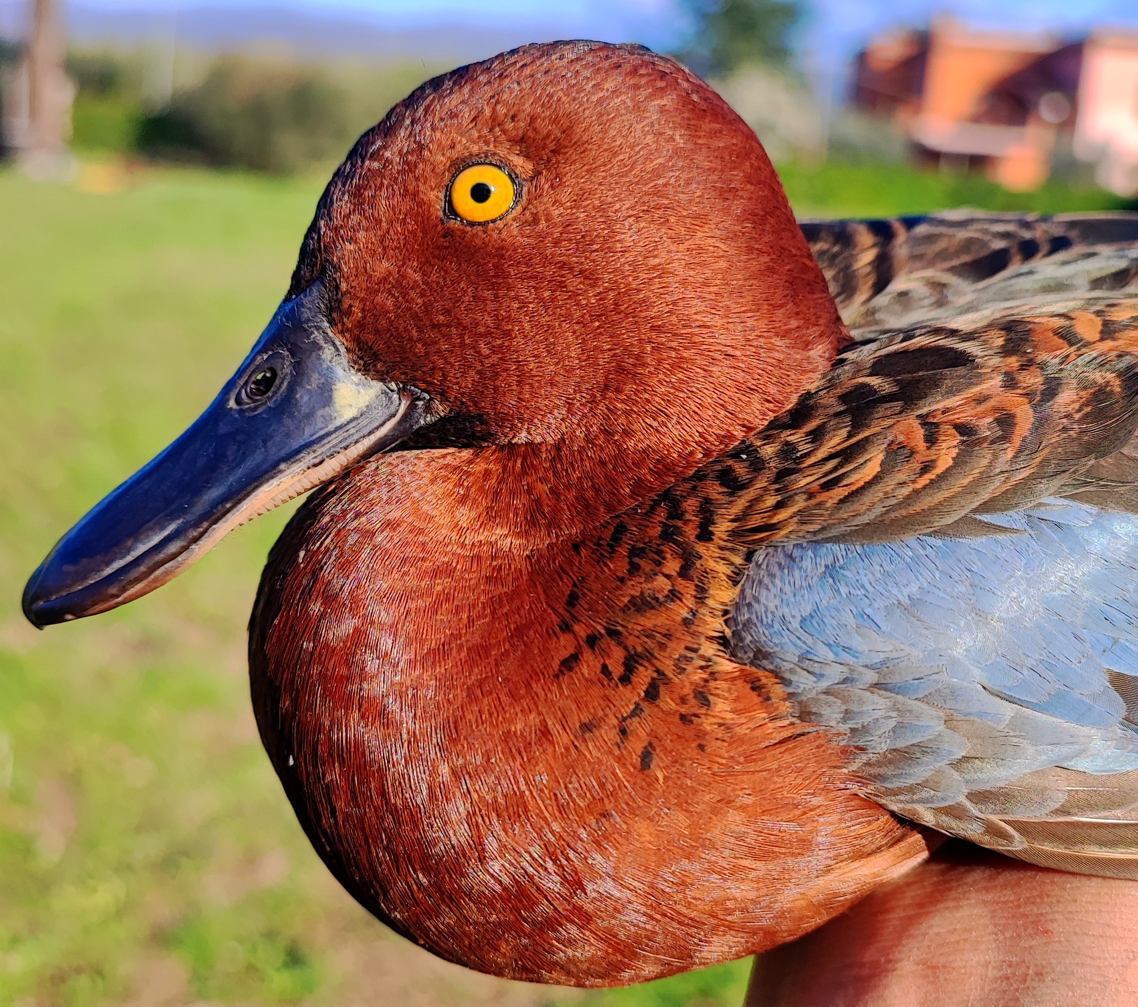 L’Alzavola Amaranto (Anas Cyanoptera) occupa gran parte del Continente Americano, dal Canada fino alla Terra del Fuoco. È un’ottima migratrice, sensibile al gelo invernale, e predilige le zone costiere più a sud, arrivando fino alle Indie occidentali e al Messico. Comune e diffusa, ha un carattere mite e viene allevata con successo in cattività. Si nutre principalmente di vegetazione, piccoli molluschi e insetti acquatici, per lo più di notte, formando spesso branchi misti ad altre specie. Il maschio ha un colore ruggine abbagliante, mentre la femmina è grigio-marrone, con occhi rossi nei maschi e più scuri nelle femmine.