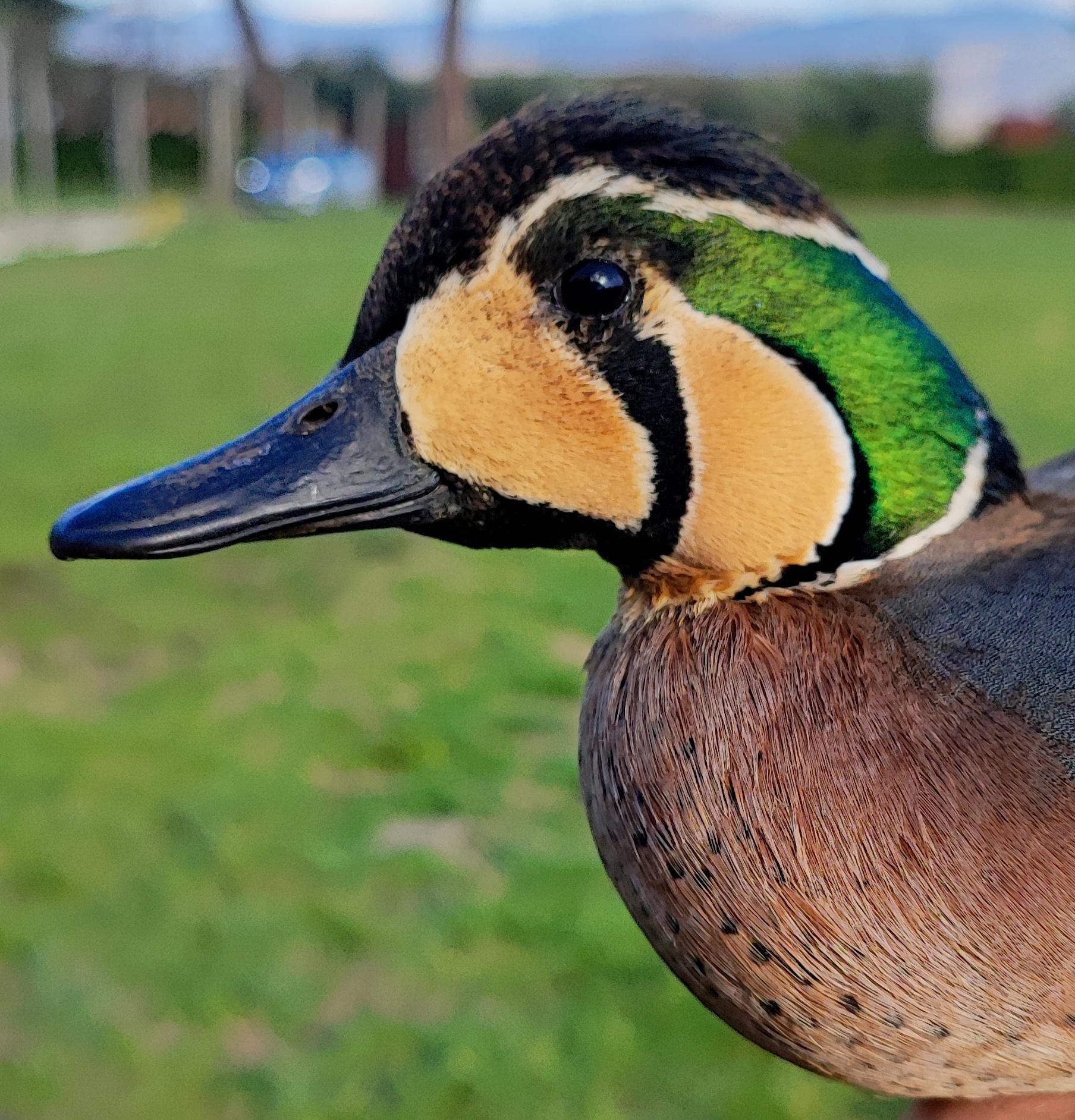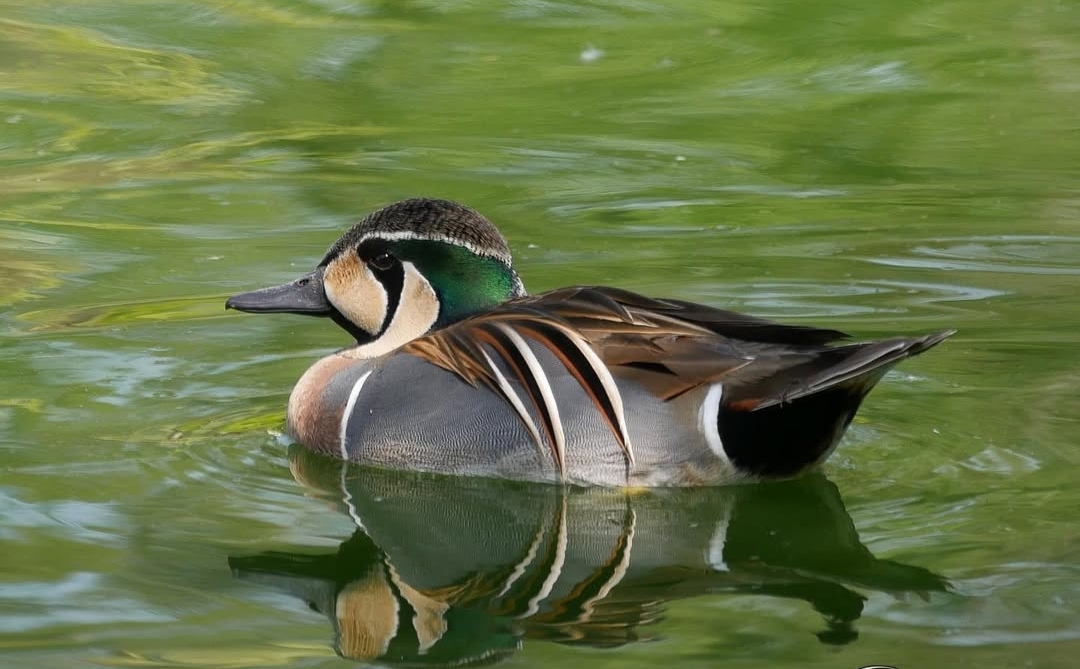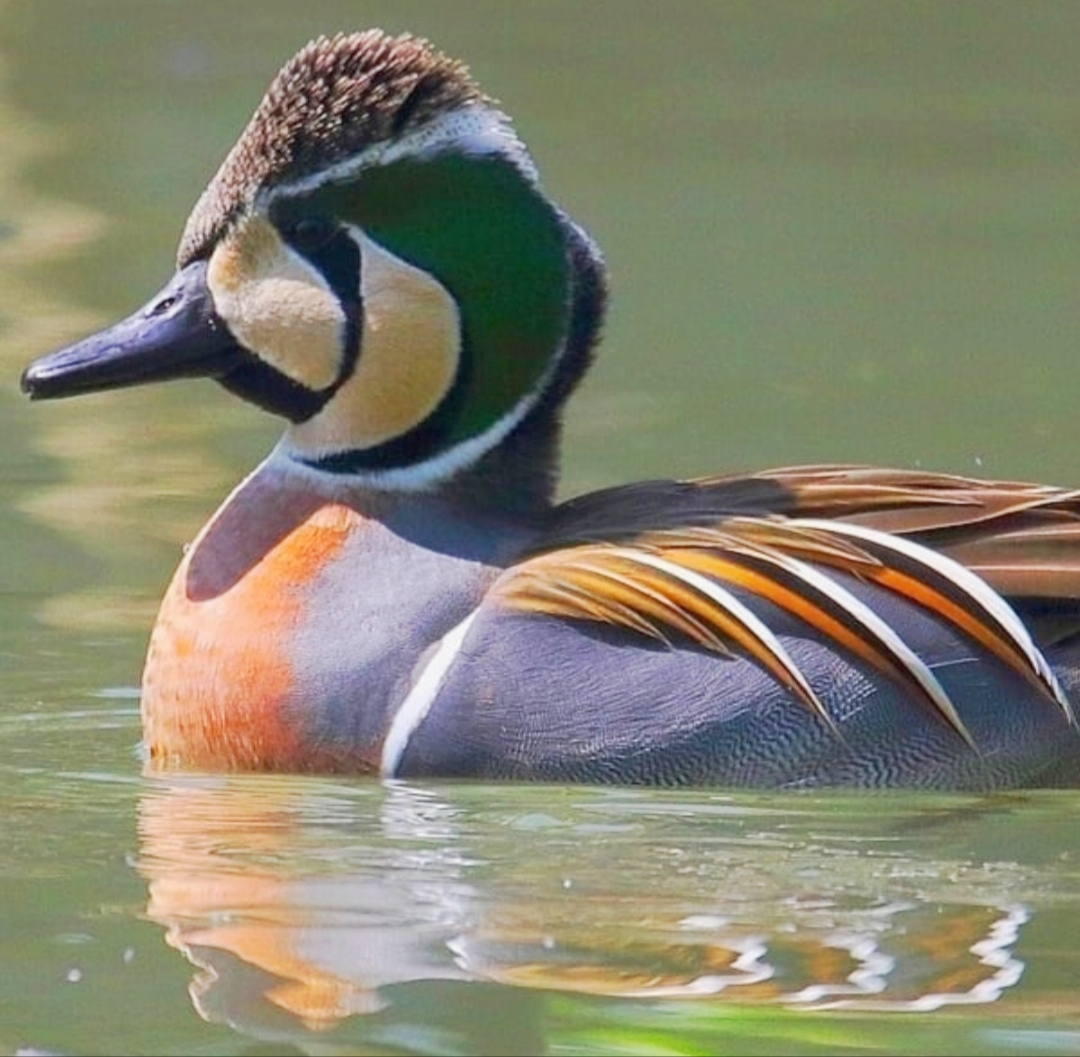 L’Alzavola Asiatica (Anas Formosa) è una specie che appartiene alle Anatre di Colore e popola le aree del nord est dell’Asia meglio identificate con le coste del lago di Baikal situato nella Siberia meridionale diviso fra i territori dell’Oblast di Irkutsk e della Repubblica di Burazia. È davvero bellissima, sembra dipinta a mano e il nome latino Anas Formosa deriva appunto dal grande fascino e dalla grande attrazione che stimola verso terzi. Tale specie, estremamente timida e silenziosa, è diffusa nelle zone ricche di foreste della Siberia Orientale e durante la stagione fredda sverna in Giappone, Corea e Cina settentrionale e orientale dove popola principalmente le grandi ed estese aree pianeggianti ricche di specchi di acqua dolce. Si nutre principalmente durante la notte e adora piccole ghiande, granaglie di vario genere e insetti vari. In inverno grandi stormi si dirigono nei campi di grano e riso e soprattutto in Sud Corea nelle grandi coltivazioni di fagioli e di soia di cui sono ghiottissime. Durante la stagione riproduttiva adorano le aree ricche di foreste e piccoli specchi d’acqua, estremamente riservate, dove la vegetazione è fitta e intricata. La femmina si occupa della costruzione del nido che avviene nei pressi dell’acqua; il nido viene costruito con erbe e sterpaglie varie anche se spesso preferiscono utilizzare vecchi tronchi pieni di piccole cavità. Il maschio durante il periodo di cova non si allontana mai dal nido e sorveglia attentamente l’ambiente circostante da eventuali intrusi. Tale specie, poco numerosa, ha avuto soprattutto negli anni passati un’altissima mortalità a causa della caccia esercitata in modo spropositato in Russia e Cina. Attualmente solo il Giappone ha proibito la caccia a causa della diminuzione sostanziale della specie. Il maschio è inconfondibile a causa della sua eccezionale testa verde, gialla e nera e la sua linea verticale bianca ai lati del petto, mentre la femmina di color grigio brunastro ha una piccola ma prominente macchia bianca alla base del becco e una striscia scura dietro l’occhio. Durante l’eclissi entrambi i sessi sono praticamente identici.