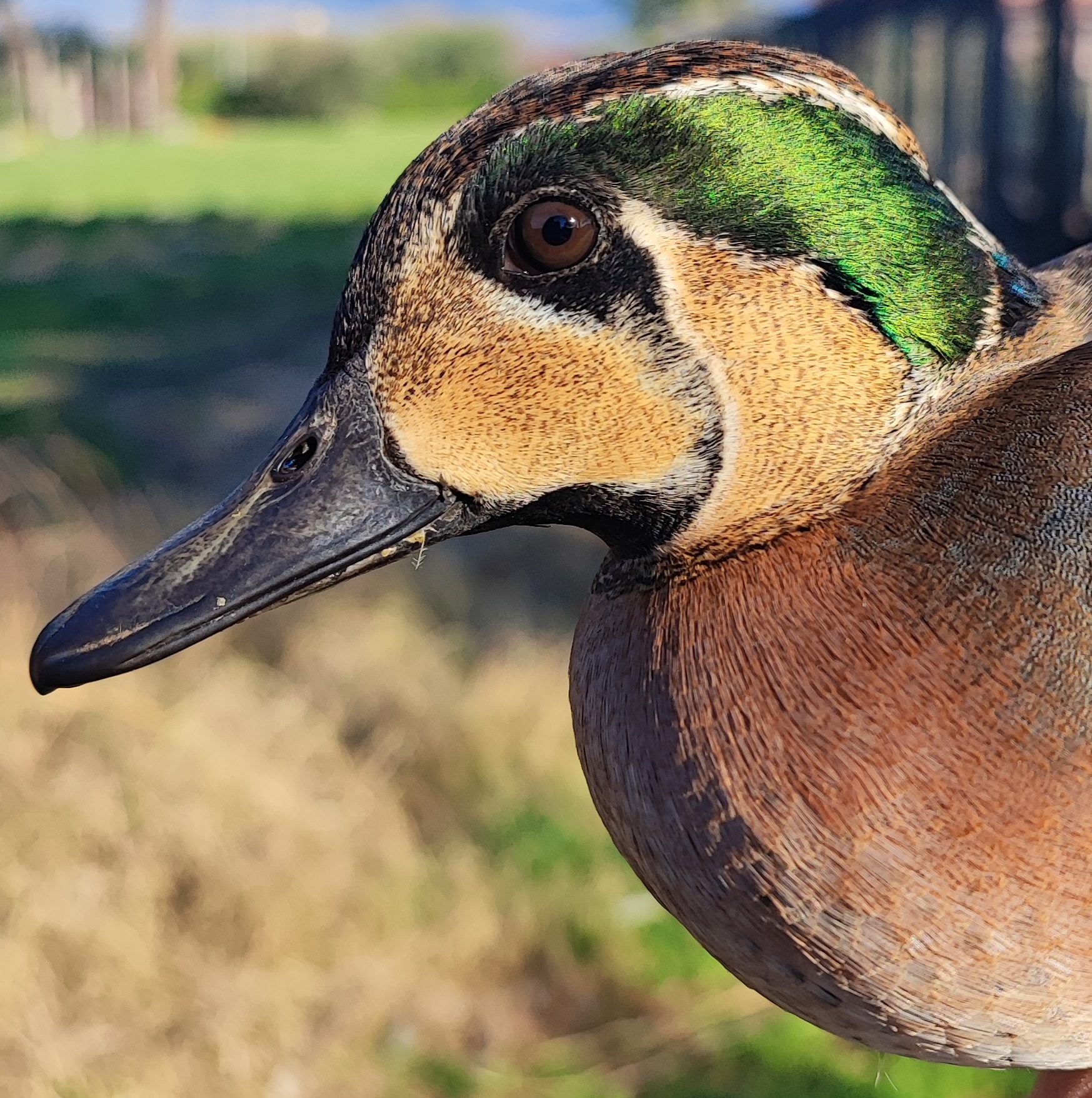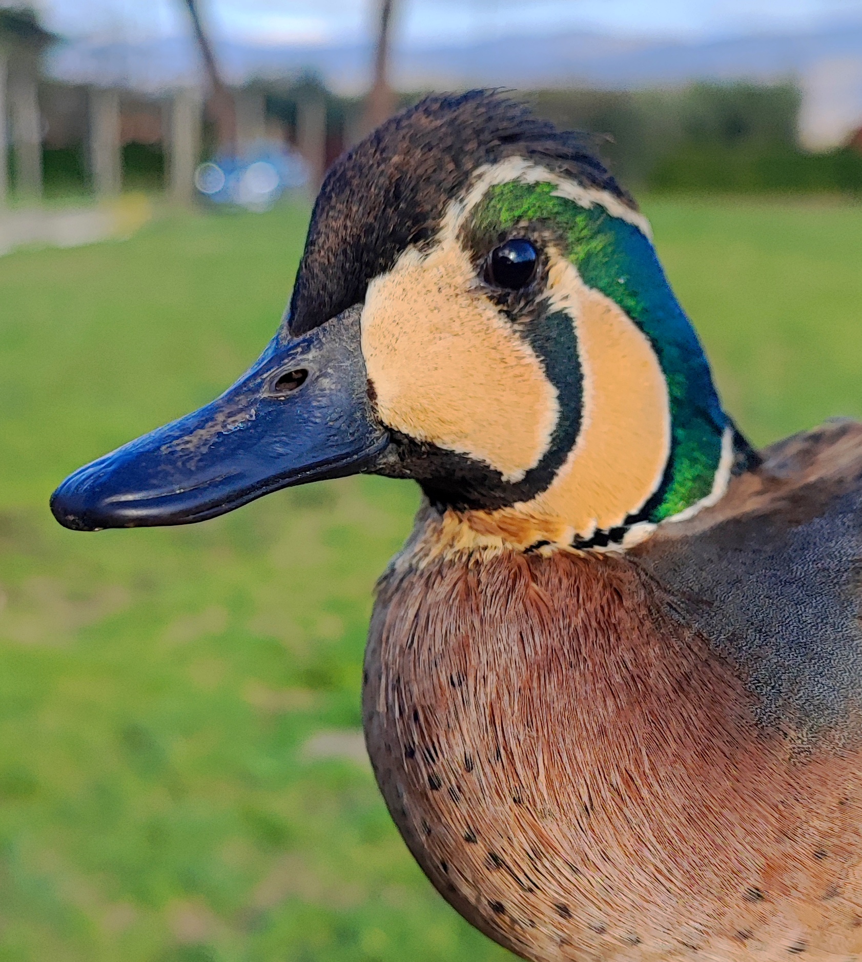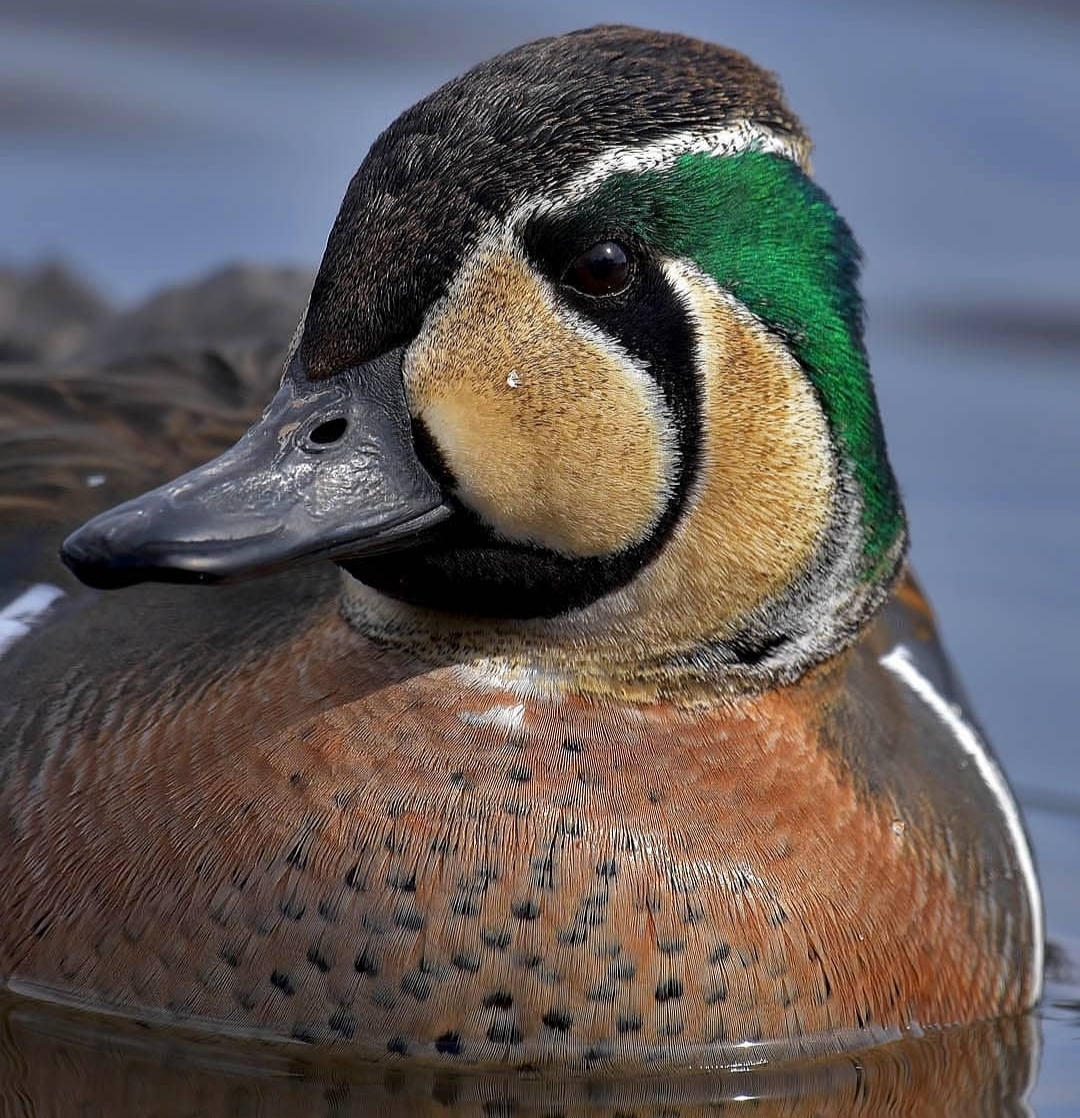 L’Alzavola Asiatica (Anas Formosa) è una specie che appartiene alle Anatre di Colore e popola le aree del nord est dell’Asia meglio identificate con le coste del lago di Baikal situato nella Siberia meridionale diviso fra i territori dell’Oblast di Irkutsk e della Repubblica di Burazia. È davvero bellissima, sembra dipinta a mano e il nome latino Anas Formosa deriva appunto dal grande fascino e dalla grande attrazione che stimola verso terzi. Tale specie, estremamente timida e silenziosa, è diffusa nelle zone ricche di foreste della Siberia Orientale e durante la stagione fredda sverna in Giappone, Corea e Cina settentrionale e orientale dove popola principalmente le grandi ed estese aree pianeggianti ricche di specchi di acqua dolce. Si nutre principalmente durante la notte e adora piccole ghiande, granaglie di vario genere e insetti vari. In inverno grandi stormi si dirigono nei campi di grano e riso e soprattutto in Sud Corea nelle grandi coltivazioni di fagioli e di soia di cui sono ghiottissime. Durante la stagione riproduttiva adorano le aree ricche di foreste e piccoli specchi d’acqua, estremamente riservate, dove la vegetazione è fitta e intricata. La femmina si occupa della costruzione del nido che avviene nei pressi dell’acqua; il nido viene costruito con erbe e sterpaglie varie anche se spesso preferiscono utilizzare vecchi tronchi pieni di piccole cavità. Il maschio durante il periodo di cova non si allontana mai dal nido e sorveglia attentamente l’ambiente circostante da eventuali intrusi. Tale specie, poco numerosa, ha avuto soprattutto negli anni passati un’altissima mortalità a causa della caccia esercitata in modo spropositato in Russia e Cina. Attualmente solo il Giappone ha proibito la caccia a causa della diminuzione sostanziale della specie. Il maschio è inconfondibile a causa della sua eccezionale testa verde, gialla e nera e la sua linea verticale bianca ai lati del petto, mentre la femmina di color grigio brunastro ha una piccola ma prominente macchia bianca alla base del becco e una striscia scura dietro l’occhio. Durante l’eclissi entrambi i sessi sono praticamente identici.