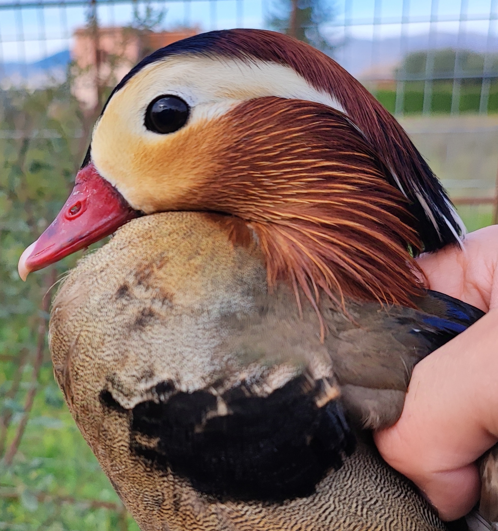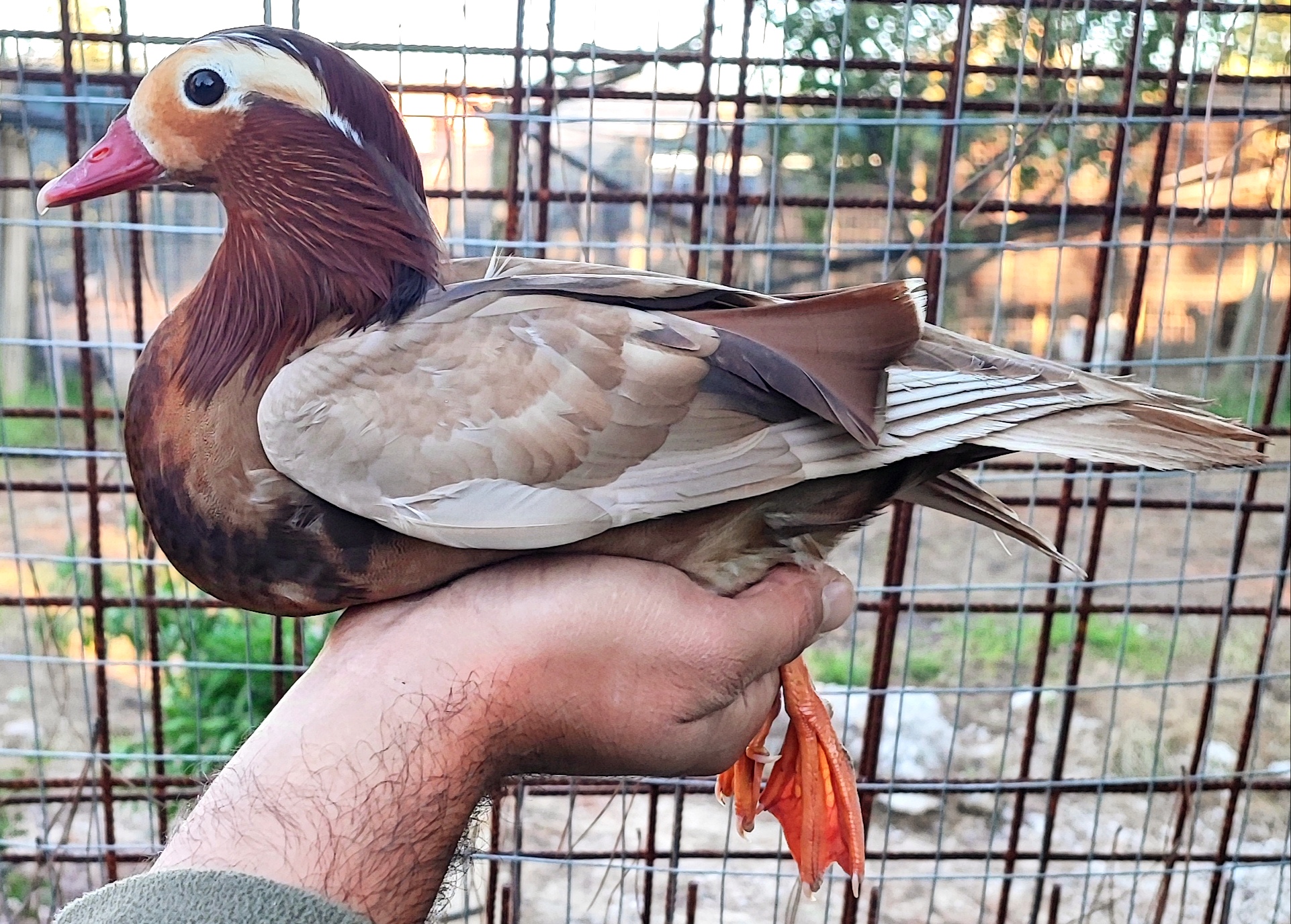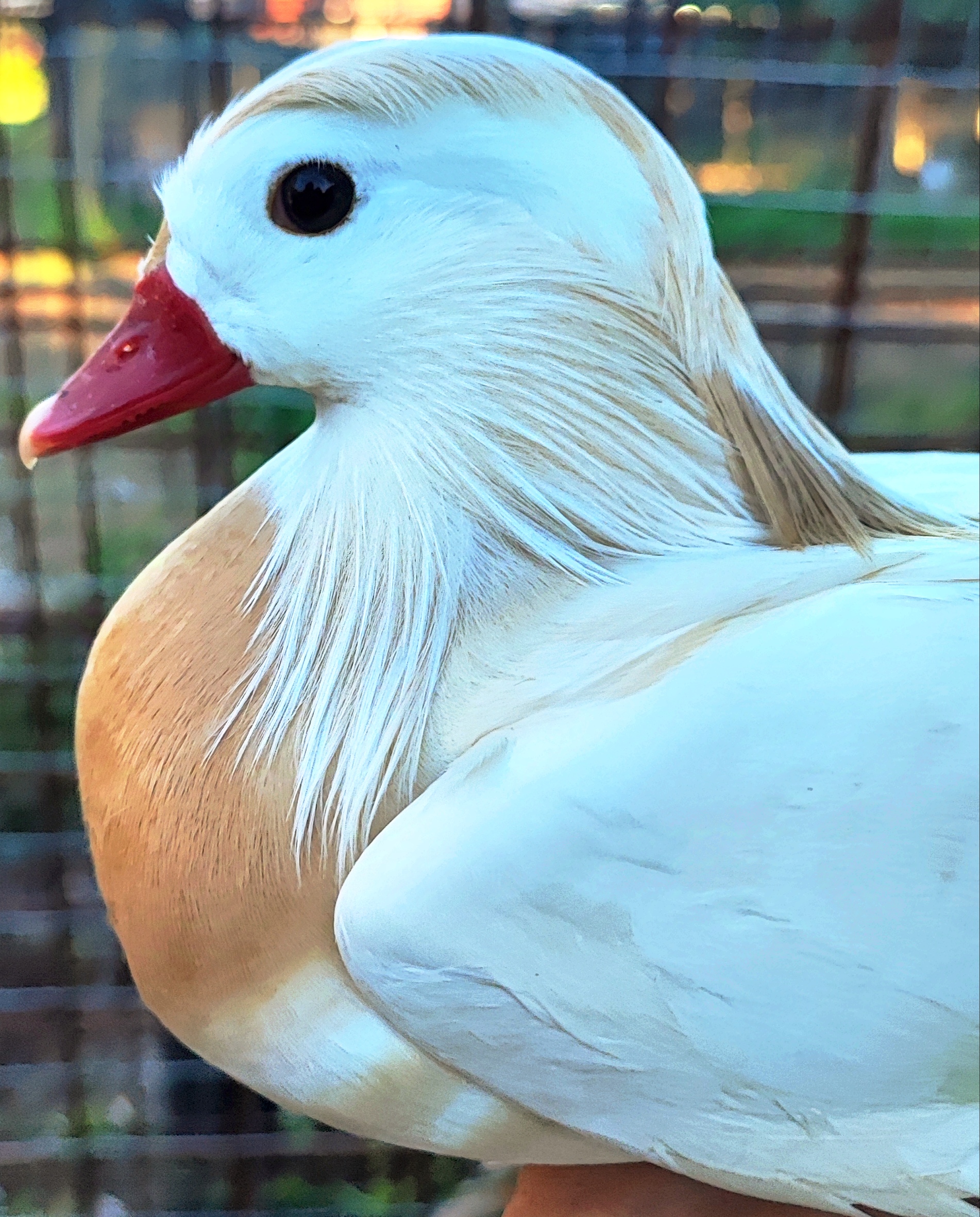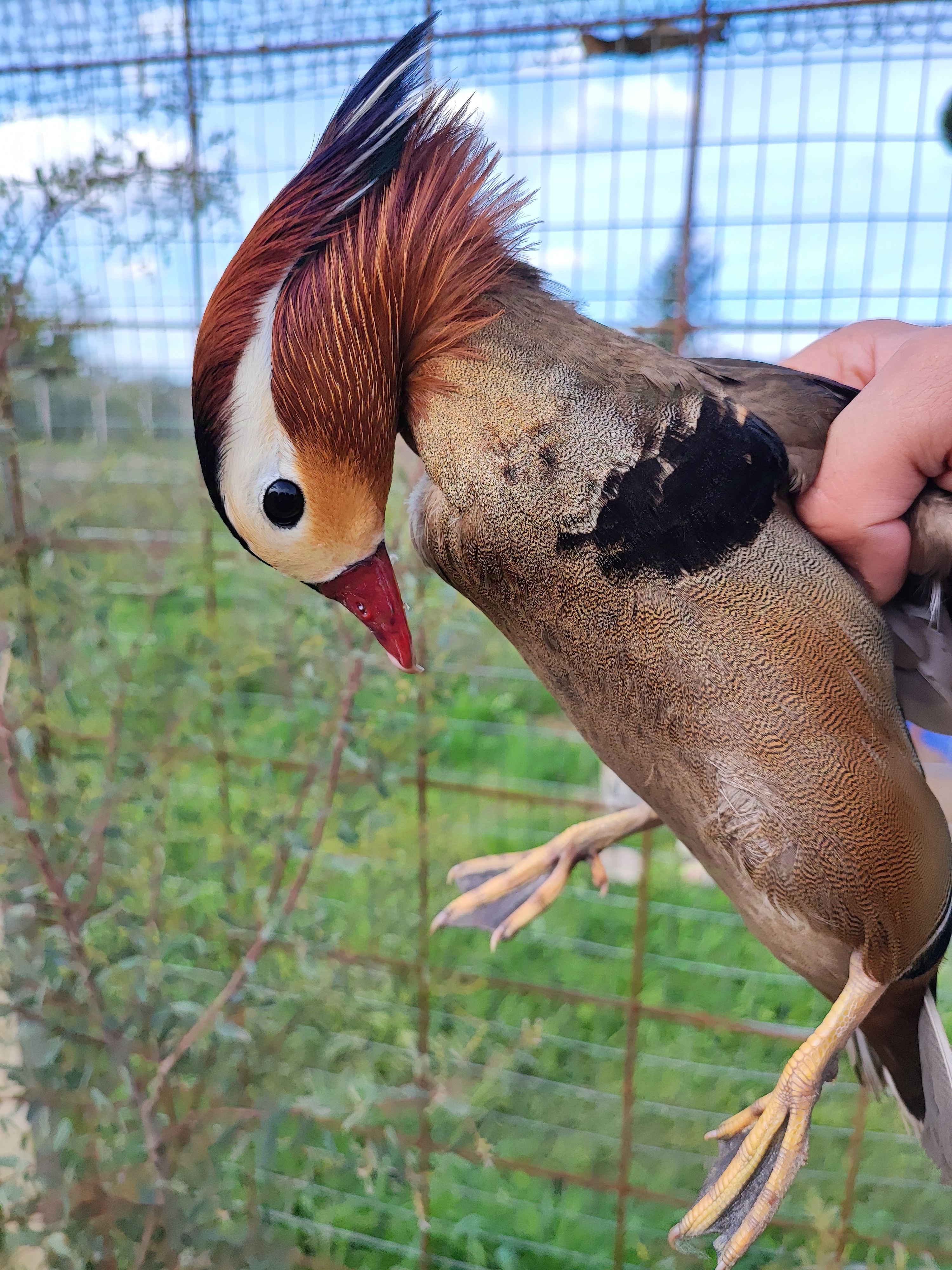 L’Anatra Mandarina (Aix Galericulata)è una specie diffusa in Giappone, Manciuria, Cina Settentrionale e Unione Sovietica, che sverna a Sud fino a Formosa. In Europa Occidentale è residente in Inghilterra, soprattutto nel Nord, con occasionali presenze in Finlandia, Repubblica Ceca, Spagna e Italia. Ha un carattere tranquillo e vive in grandi gruppi; i maschi competono tra loro, soprattutto durante la stagione degli amori. Abita nelle foreste a latifoglie delle aree temperate, in prossimità di specchi d’acqua. Si nutre di piccoli semi e tuberi, e in cattività si alleva facilmente. La femmina depone fino a 15 uova, incubate per circa 29/31 giorni, diventando aggressiva nei confronti di altre specie. Il maschio è riconoscibile per le vele arancioni e la cresta colorata, mentre la femmina è grigio-bruno con macchie bianche. Entrambi presentano uno specchio alare verde opaco.