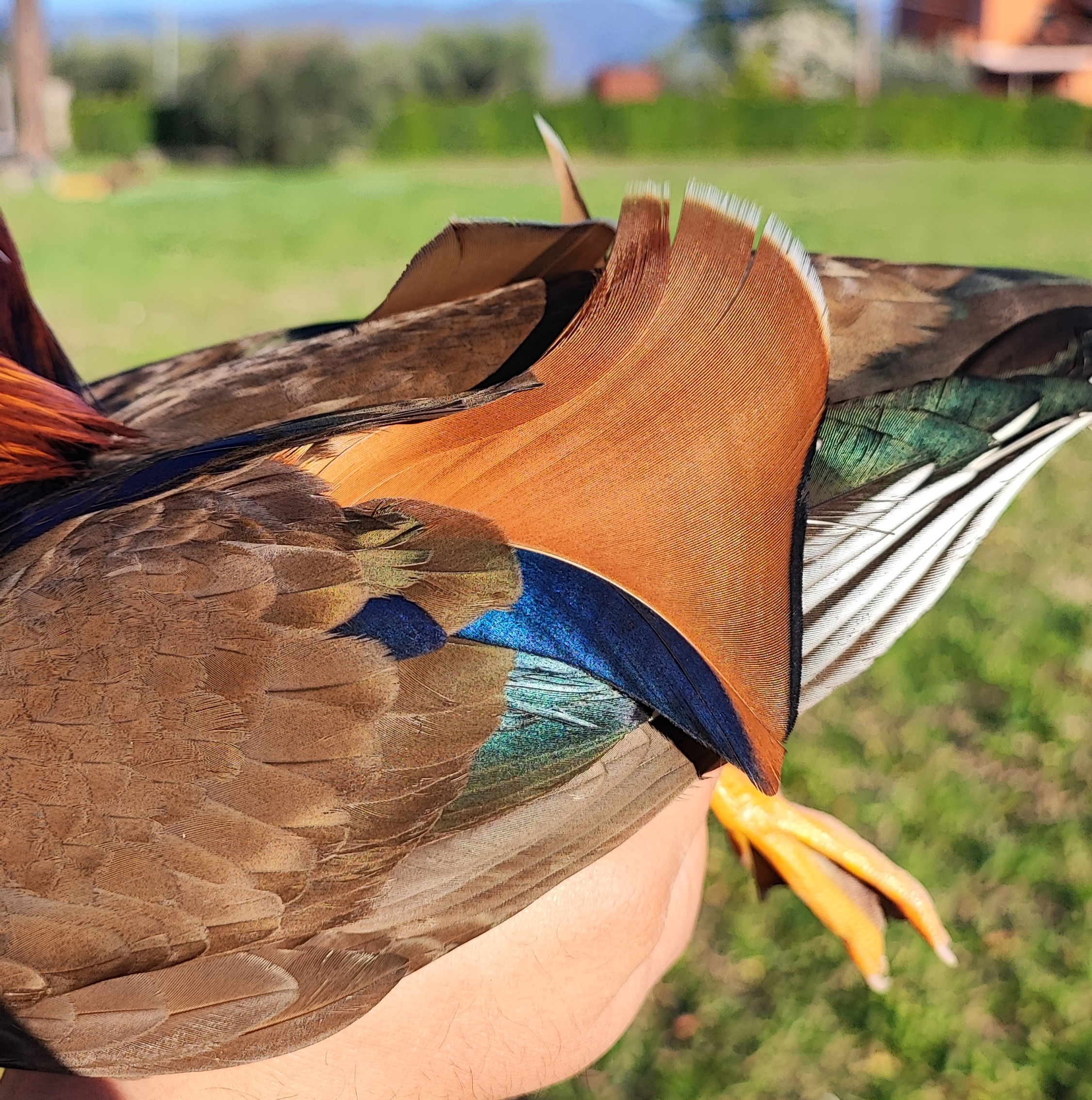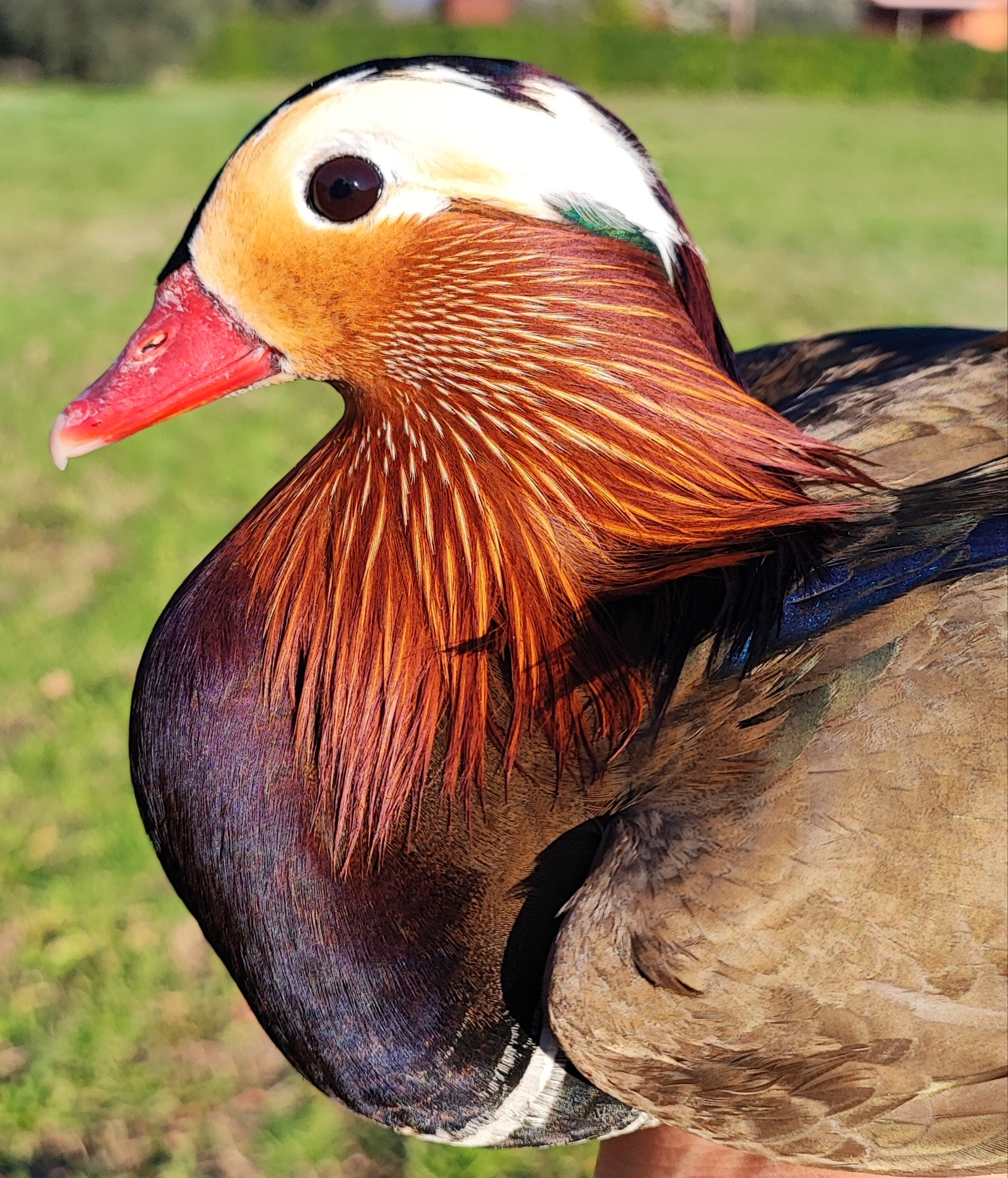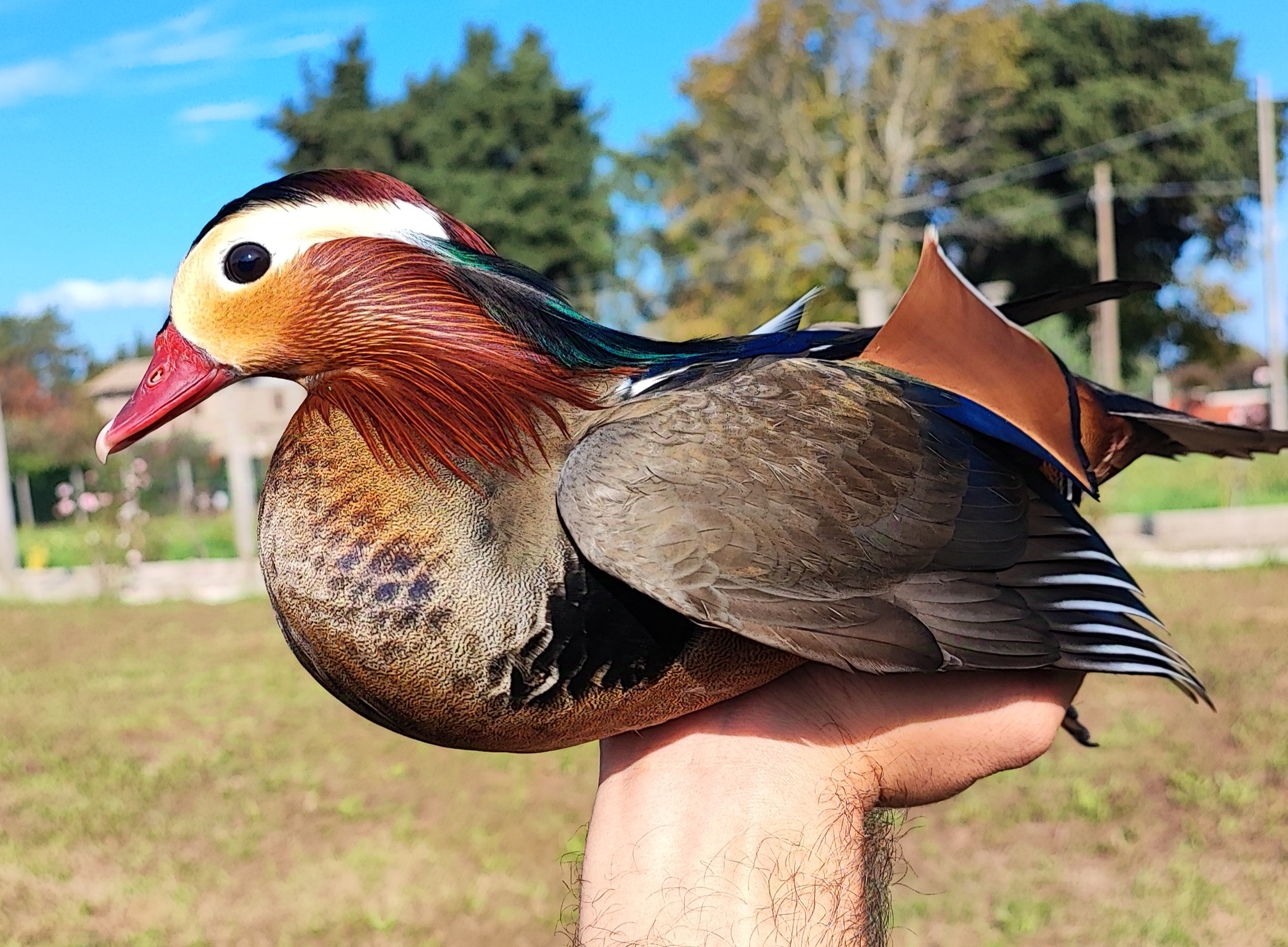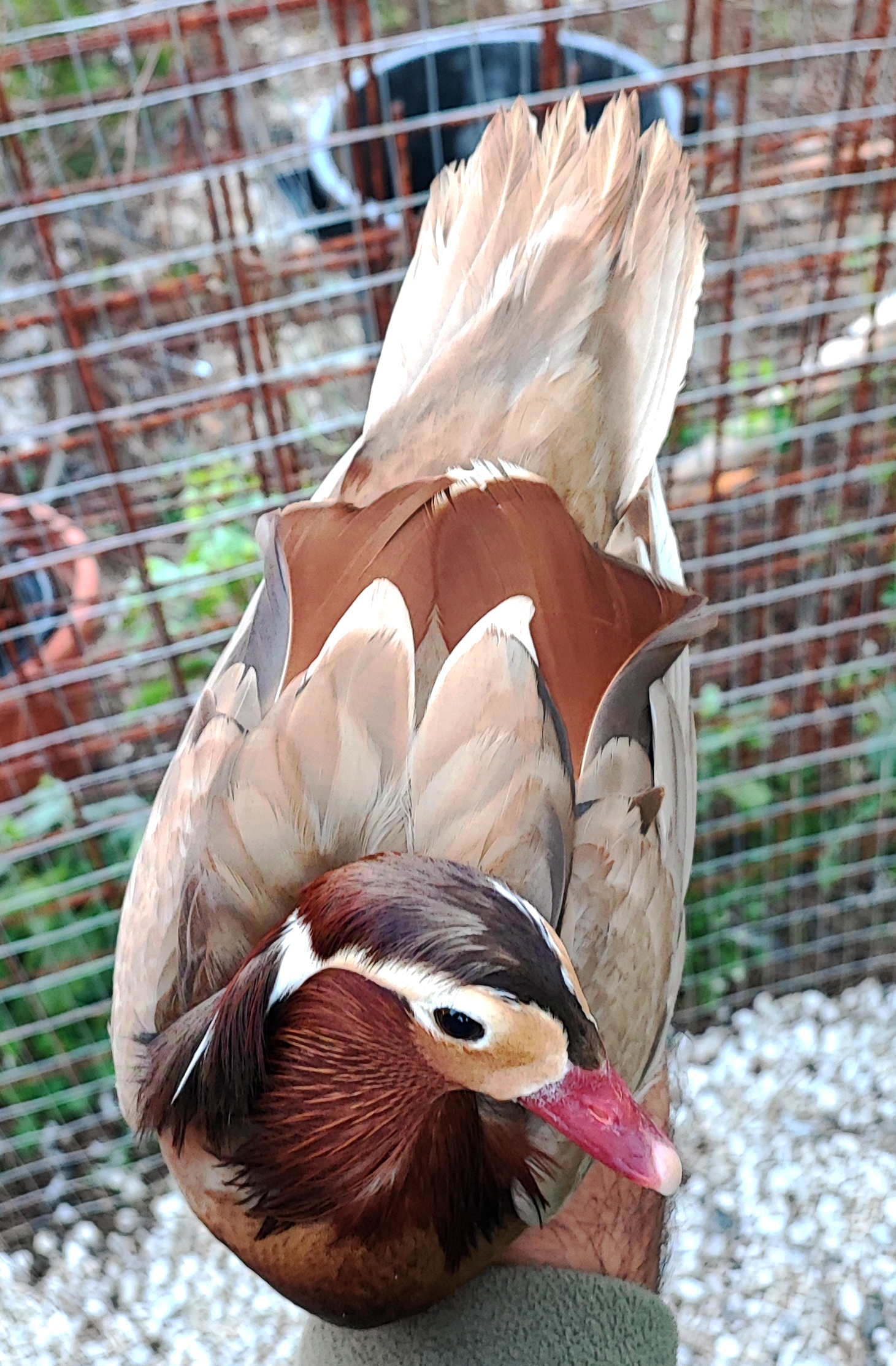 L’Anatra Mandarina (Aix Galericulata)è una specie diffusa in Giappone, Manciuria, Cina Settentrionale e Unione Sovietica, che sverna a Sud fino a Formosa. In Europa Occidentale è residente in Inghilterra, soprattutto nel Nord, con occasionali presenze in Finlandia, Repubblica Ceca, Spagna e Italia. Ha un carattere tranquillo e vive in grandi gruppi; i maschi competono tra loro, soprattutto durante la stagione degli amori. Abita nelle foreste a latifoglie delle aree temperate, in prossimità di specchi d’acqua. Si nutre di piccoli semi e tuberi, e in cattività si alleva facilmente. La femmina depone fino a 15 uova, incubate per circa 29/31 giorni, diventando aggressiva nei confronti di altre specie. Il maschio è riconoscibile per le vele arancioni e la cresta colorata, mentre la femmina è grigio-bruno con macchie bianche. Entrambi presentano uno specchio alare verde opaco.