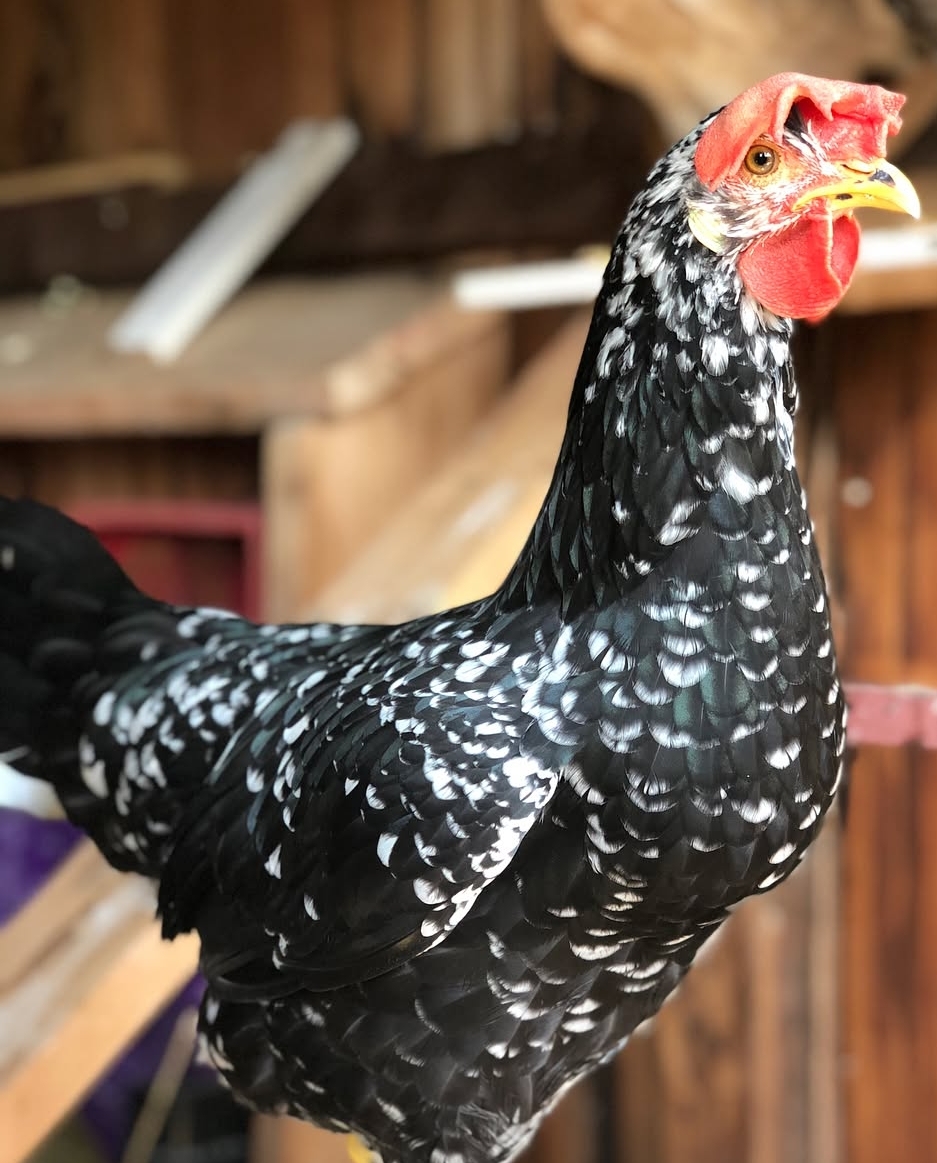 Piumaggio in generale: nero brillante con riflessi verdi metallici. Il disegno è formato da una perla bianca a forma di “V” all’apice di alcune penne. Indicativamente la proporzione delle perle sul piumaggio è di una penna ogni tre. Nel gallo, sul dorso, è di 1 a 5 e nelle lanceolate della mantellina e della groppa, dove la macchia è più piccola, di 1 ogni 2. Tutte le timoniere, le falciformi e le remiganti devono avere l’apice bianco. La perlatura deve essere il più regolare possibile e non troppo grossa, il nero deve sempre dominare. Il bianco deve essere puro e il più nettamente possibile separato dal nero. La rachide segue il colore del disegno. La picchiettatura formerà un disegno regolare in alcune parti del piumaggio come le fasce dell’ala ed alla fine delle remiganti secondarie. Tarsi gialli con picchiettatura da ardesia a nera; l’assenza o la scarsità della picchiettatura sui tarsi non è da considerarsi difetto grave.Piumino: ardesia scuro.