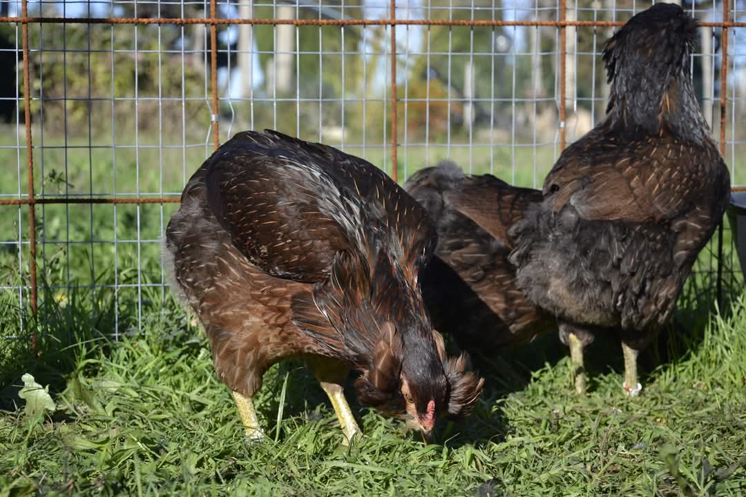 Testa e piumaggio del collo bruno dorato con fiamme nere. Petto salmone. Piumaggio del mantello bruno con pepatura nera, rachide bruno chiaro e orlatura nerastra più o meno marcata. Gambe grigio/bruno. Addome grigio/nero. Tarsi verde salice. Iride di colore rosso/aranciato.