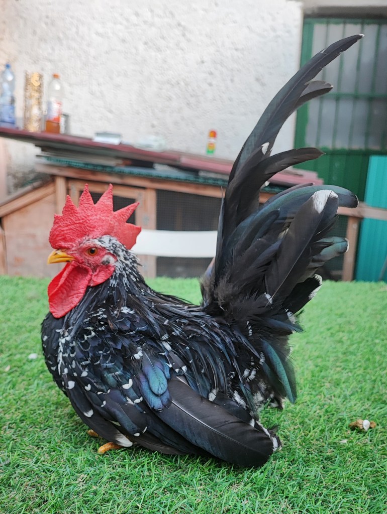 Coda:molto grande e verticale, supera la testa di un terzo della sua lunghezza. Nel gallo le grandi falciformi sono a sciabola, le piccole sono abbondanti.
