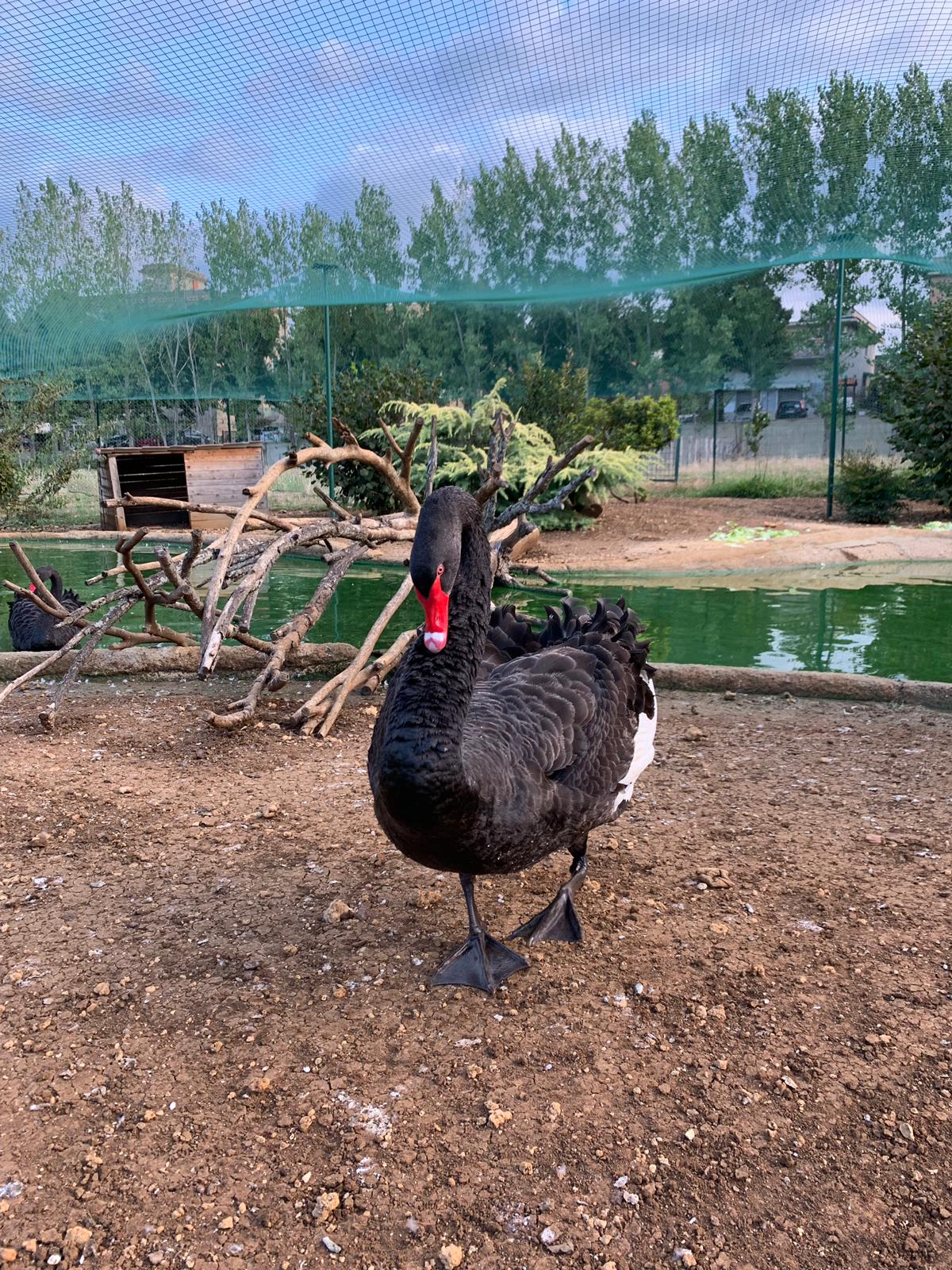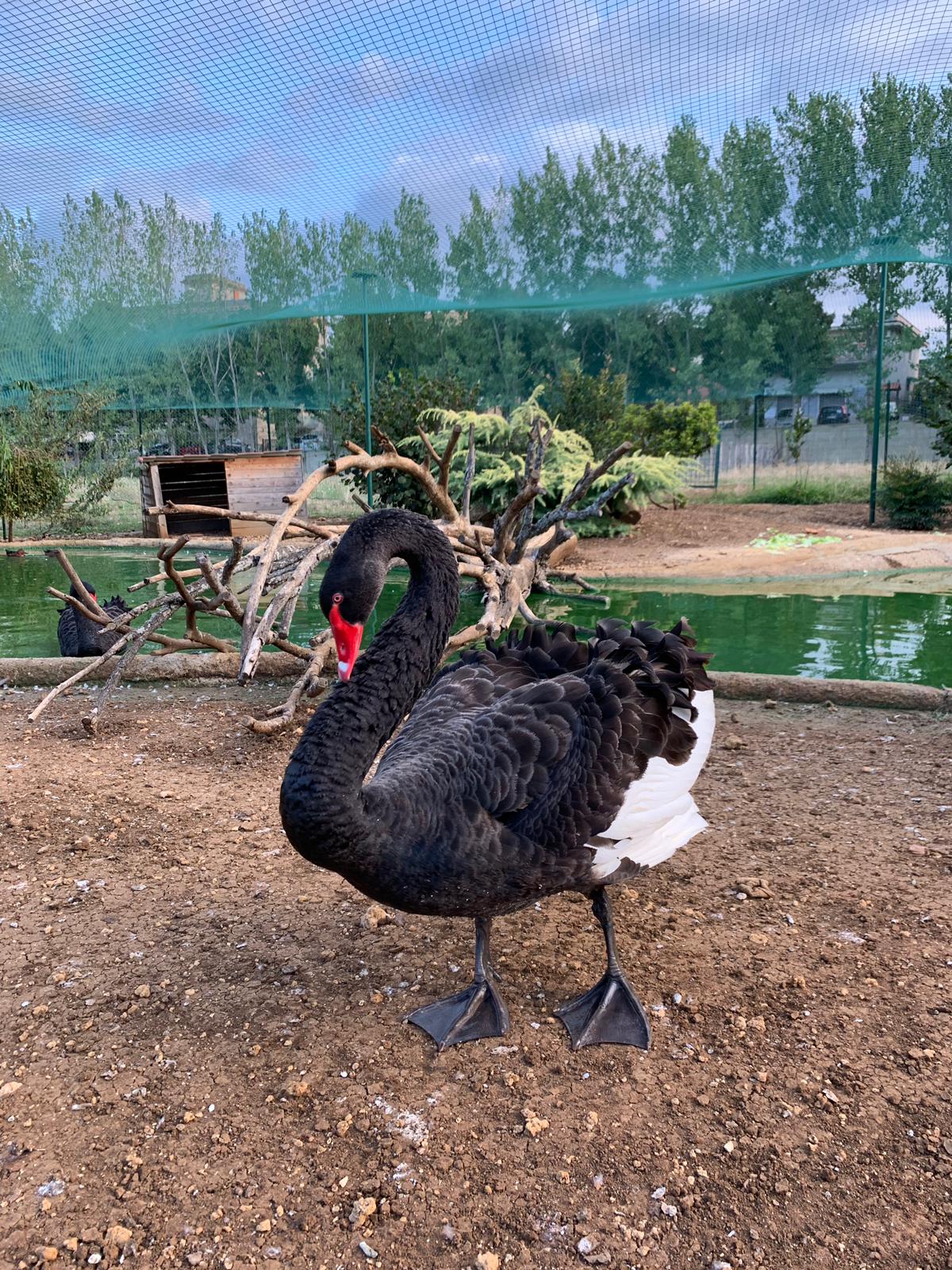 È chiamato cigno nero per il suo piumaggio, completamente nero tranne le penne remiganti bianche visibili durante il volo. È imparentato con il cigno reale e viene identificato simbolicamente come il negativo speculare. Questo imponente uccello raggiunge i 140 cm di lunghezza e ha un’apertura alare tra i 160 e i 200 cm, con un becco rosso attraversato da una striscia bianca. Ha il collo più lungo in proporzione al peso e all’apertura alare.