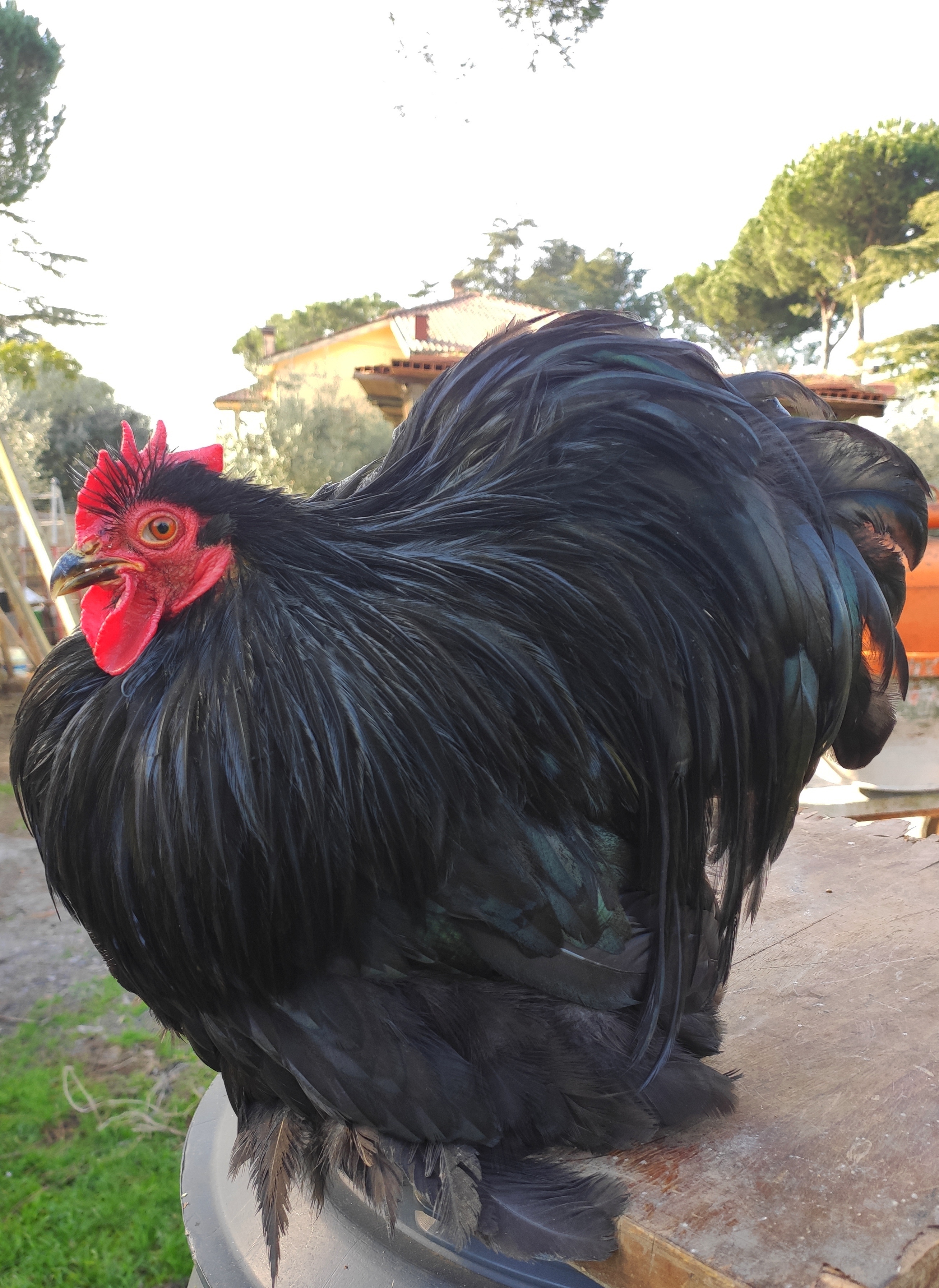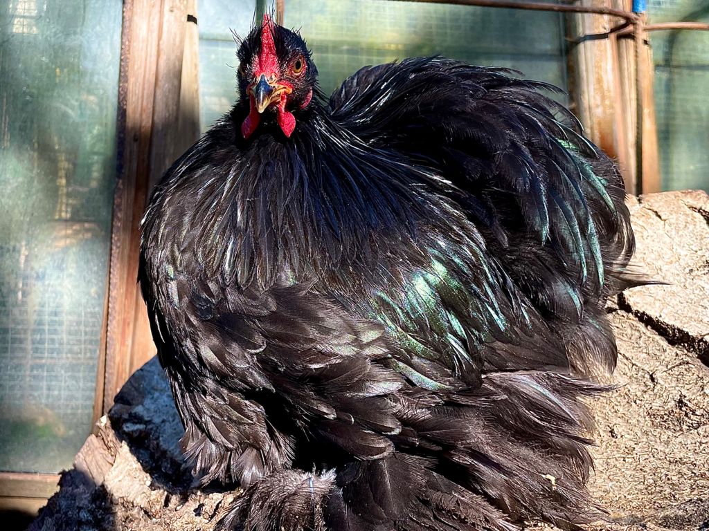 Difetti gravi: piumaggio opaco; assenza di riflessi nel gallo; riflessi porpora o bluastri; penne di altro colore; becco completamente nero.