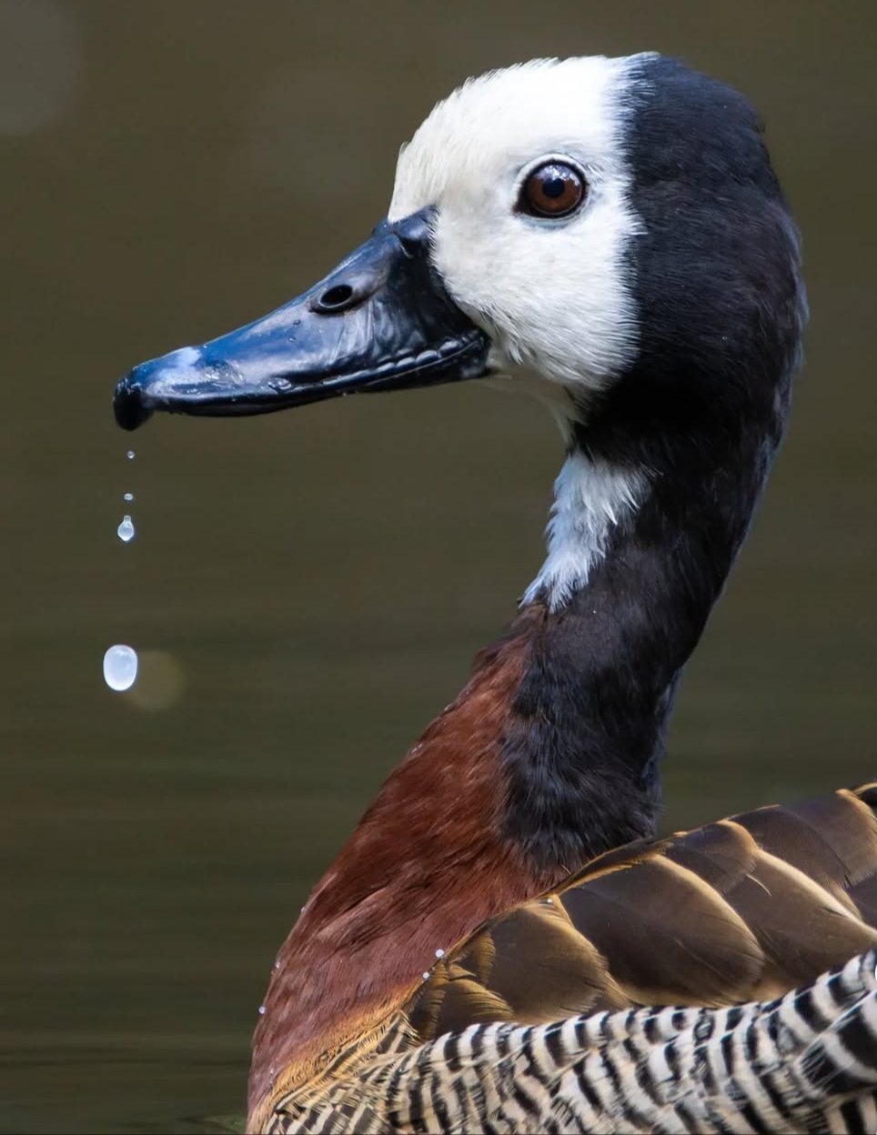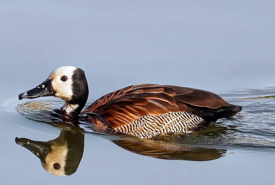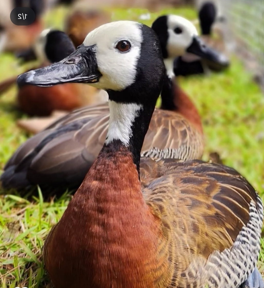 La Dendrocigna a Faccia Bianca (Dendrocygna Viduata) è un’anatra originaria dell’Africa, che si è stanzializzata in America a seguito di migrazioni, sebbene molte non siano sopravvissute. Questo uccello notturno, di corporatura snella e allungata, vive in grandi gruppi e produce un suono melodico. Preferisce habitat acquatici come paludi salmastre e terreni umidi, nutrendosi perlopiù di vegetazione, in particolare di semi di mais e grano, e può causare danni alle coltivazioni. La stagione riproduttiva inizia in primavera, con nidi costruiti da entrambi i genitori e una cura prolungata dei piccoli. Entrambi i sessi sono simili nei colori, ma i maschi hanno un comportamento più aggressivo.