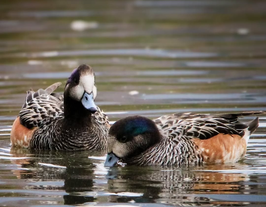 I fianchi delle anatre fischioni sono di colore ruggine rossiccio, simile anche alle cosce e al sottocoda, mentre la coda è nera e la sopra-coda bianca con macchiettature. Presentano un becco grigio-celeste e zampe grigie. I maschi sono più grandi e con una livrea più luminosa rispetto alle femmine. In volo, sono riconoscibili per le macchie bianche sulle ali. Il nome “fischioni” si riferisce a specie del genere Anas, note per i loro vocalizzi unici. Due specie si riproducono in Eurasia e Nord America, mentre il fischione cileno è l’unico a sud. Hanno abitudini alimentari vegetariane e nuotano con una postura più eretta. Durante il volo producono fruscii e i maschi emettono vocalizzi distintivi.