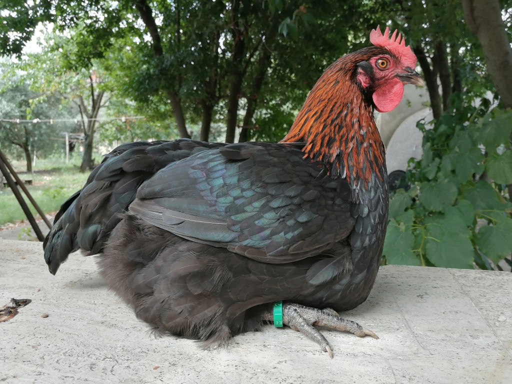Dorso: piatto, lungo, leggermente inclinato verso la groppa che deve essere larga, arrotondata, senza cuscini, particolarmente ricca di piumaggio. Nella gallina l’inclinazione è inferiore.