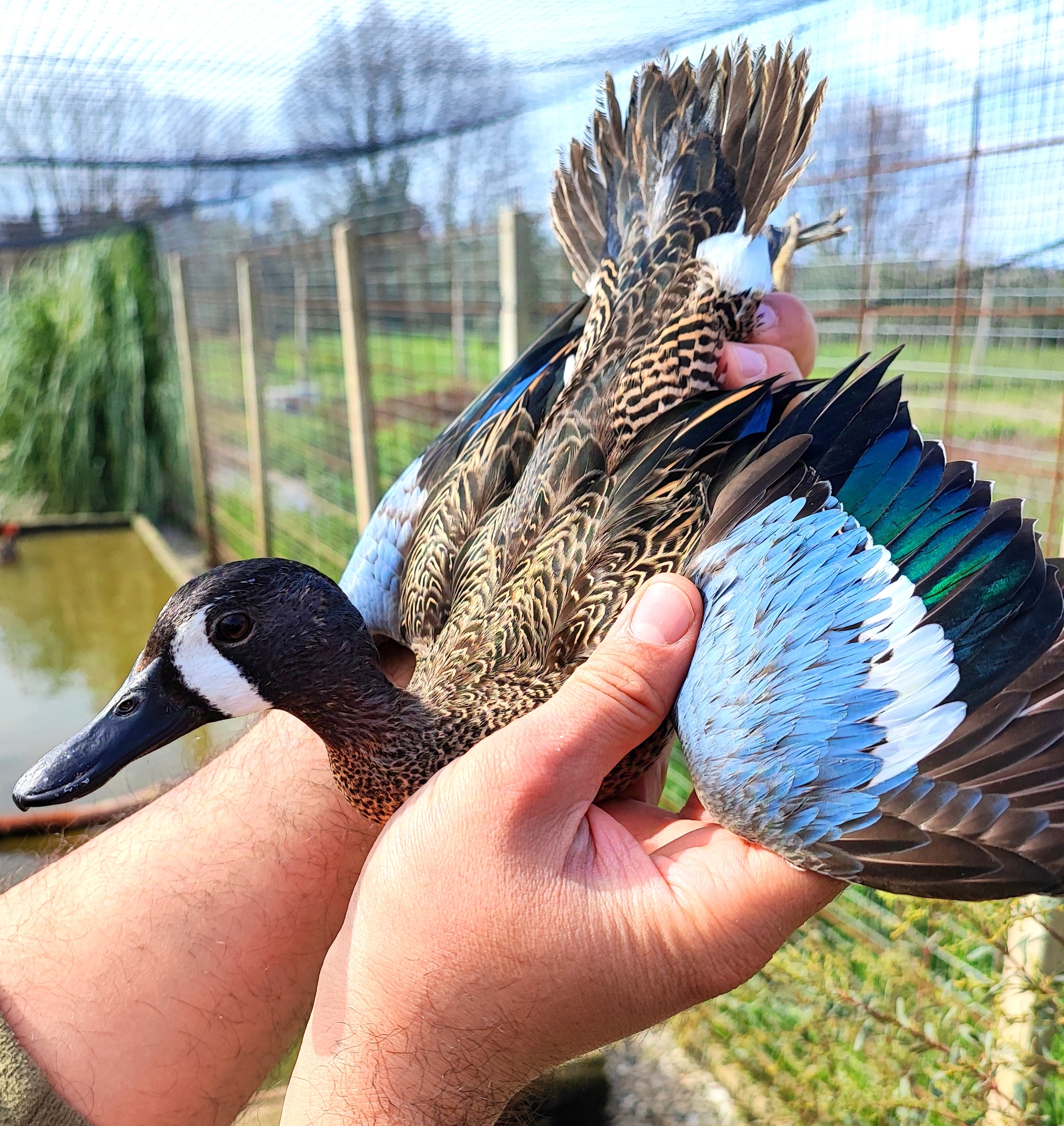 La Marzaiola Americana (Anas Discors) è un’Anatra di Superficie diffusa in Nord America, simile per corredo genetico all’Alzavola Cannella. È gregaria e forma stormi con altri uccelli acquatici. Durante l’inverno, migra verso il Centro e il Sud America, preferendo habitat naturali come acque dolci e paludi di mangrovie, da cui si nutre principalmente di vegetali, ma anche di piccoli molluschi e insetti. Costruisce il nido tra la vegetazione, vicino a acque calme, adornato con piumino. Depone 10/12 uova, incubate per oltre tre settimane. La femmina si prende cura dei piccoli fino al volo. Il nome Blue-Winged Teal deriva dalle macchie blu sulle ali, evidenti anche nella femmina. Il maschio ha colori più scuri e macchie bianche sulla groppa, mentre la femmina è grigiastro con macchie azzurre. I giovani imitano la femmina adulta fino all’autunno, quando iniziano a cambiare piumaggio.