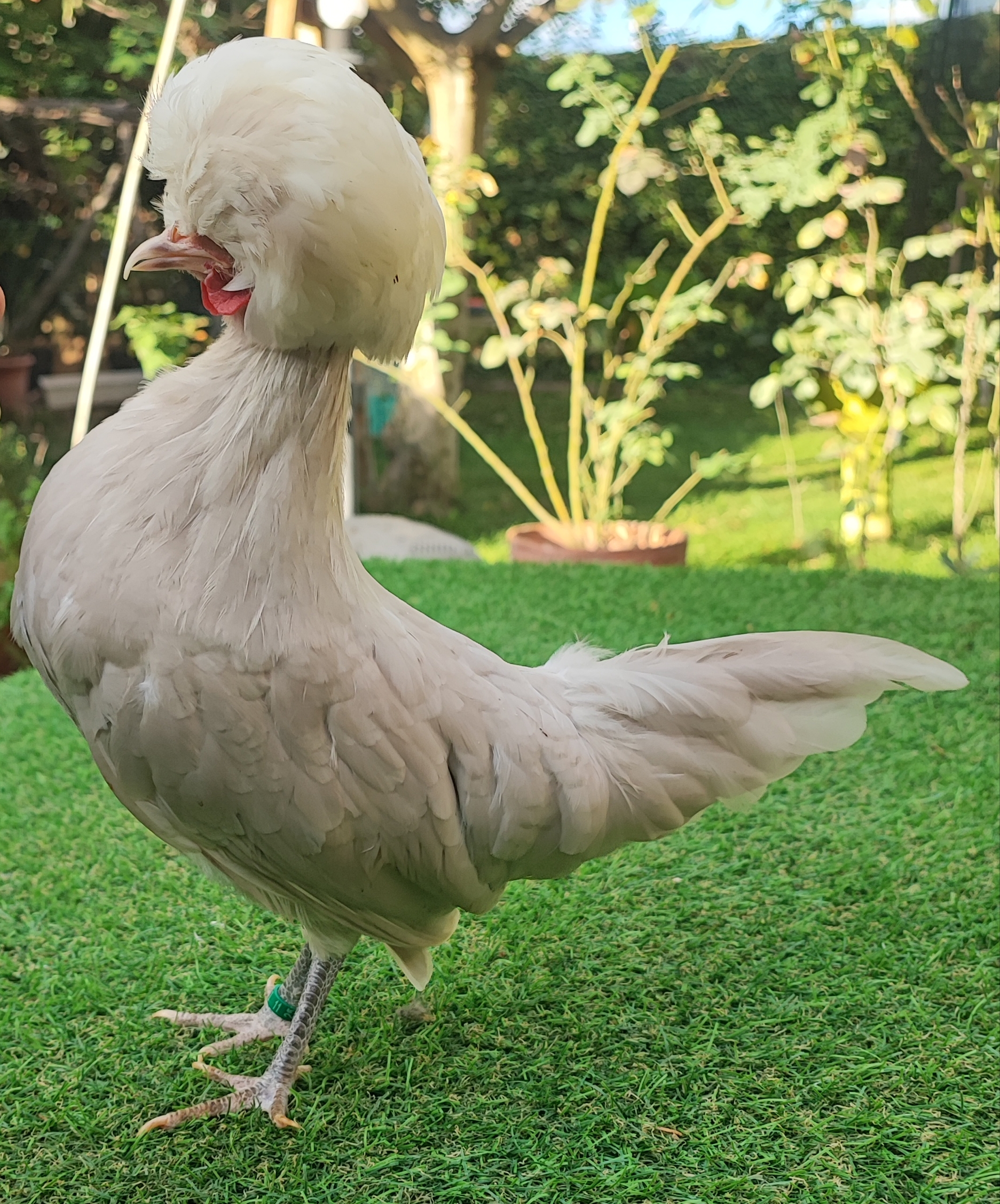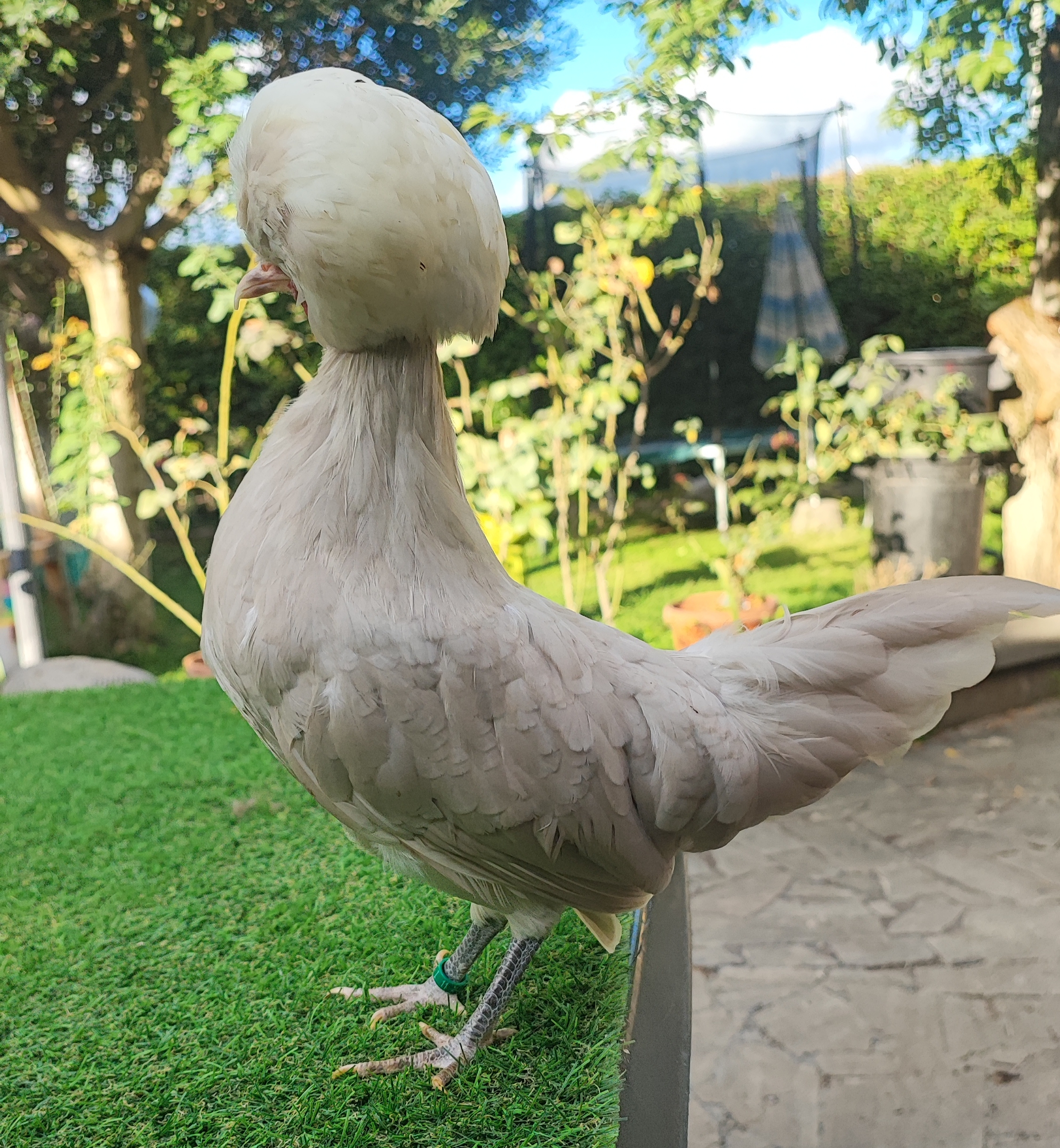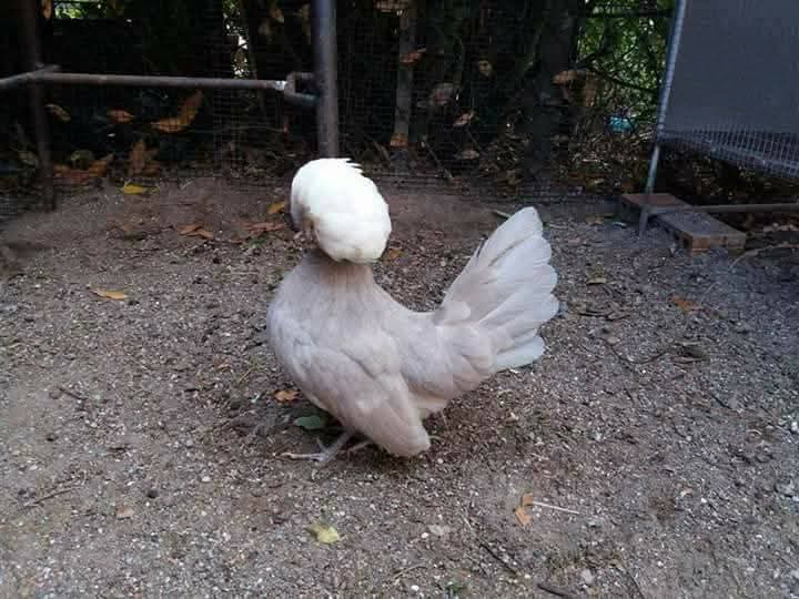 Mantello di colore marrone grigiastro chiaro senza lucentezza percettibile. Le falciformi del gallo, nonché il piumaggio della groppa, del dorso e delle spalle sono di tonalità leggermente più scura. L’omogeneità prevale sull’ intensità del colore. Ciuffo bianco.Tarsi e becco grigio ardesia ammessi leggermente più chiari.