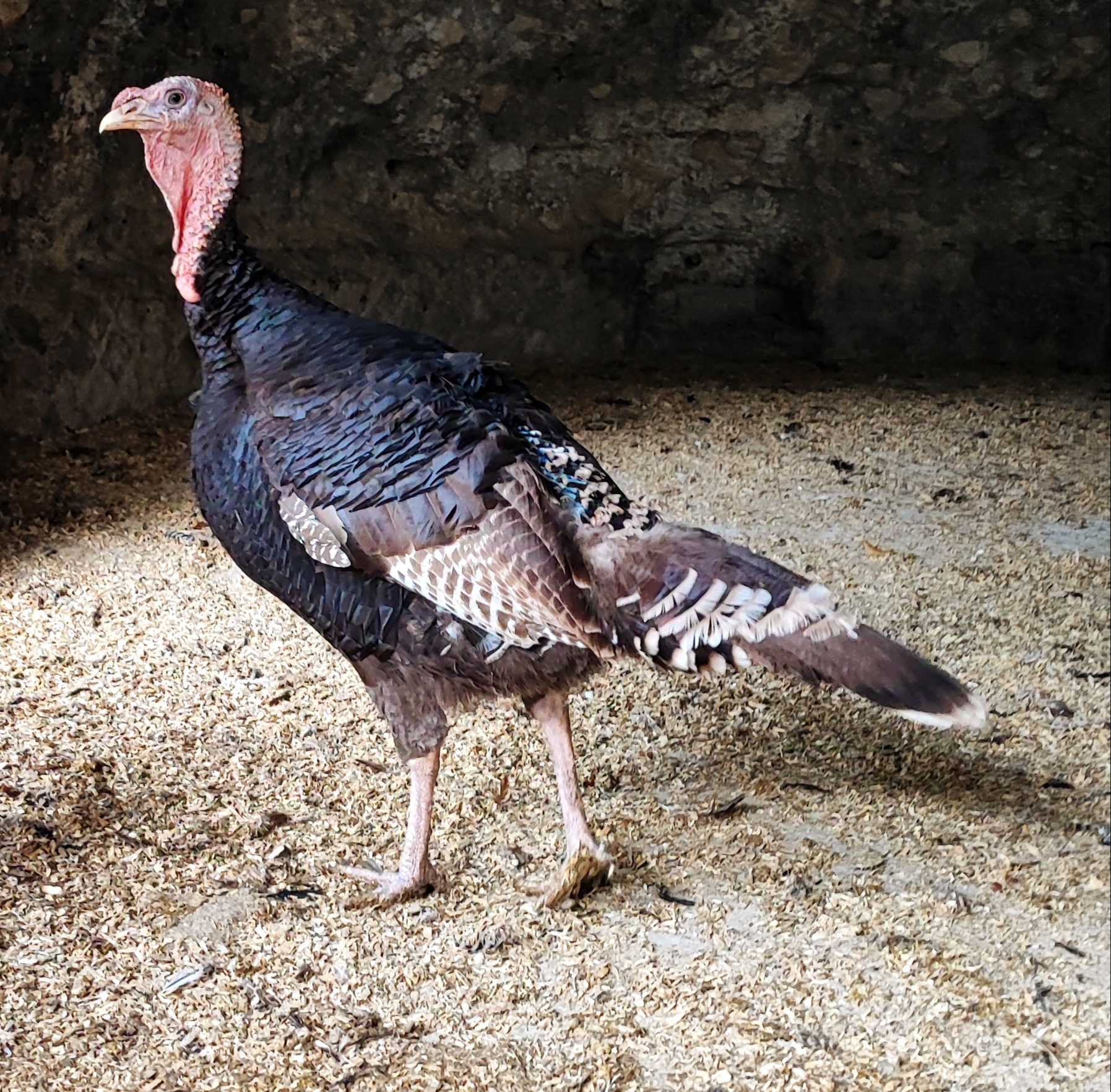 I tacchini (genere Meleagris) sono gallinacei con zampe lunghe e ali e coda corte. La testa e parte del collo sono bitorzolute, con un’escrescenza carnosa erettile nel maschio. A seconda dell’eccitazione, le caruncole del collo e della testa variano dal rosso scarlatto al blu e grigio. Le ali, arrotondate, toccano il suolo durante il corteggiamento. La coda, composta da diciotto penne, viene alzata a raggiera in un’azione called “la ruota”. Una particolarità del piumaggio maschile è che alcune penne del petto somigliano a setole lunghe e sporgenti.
