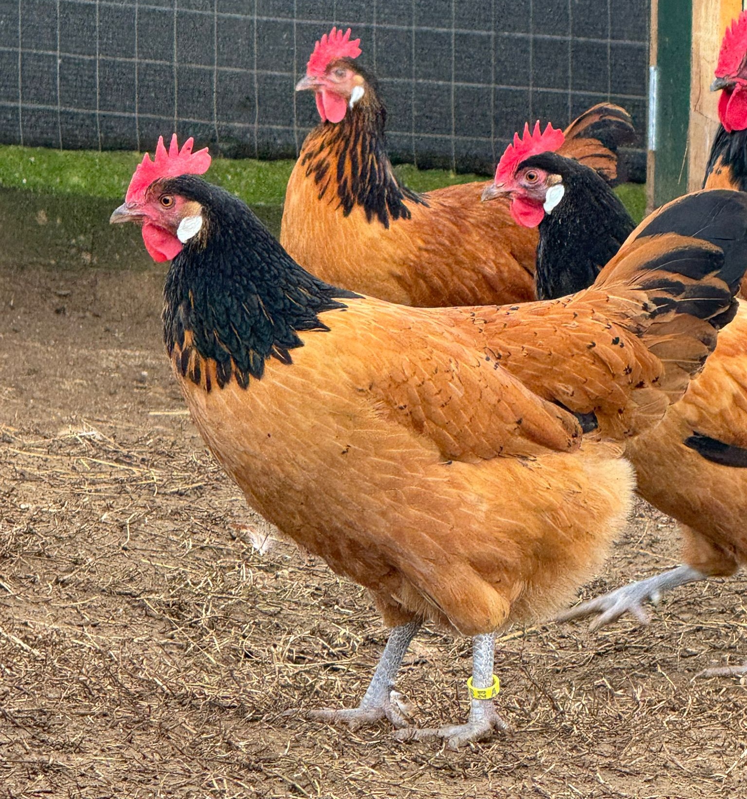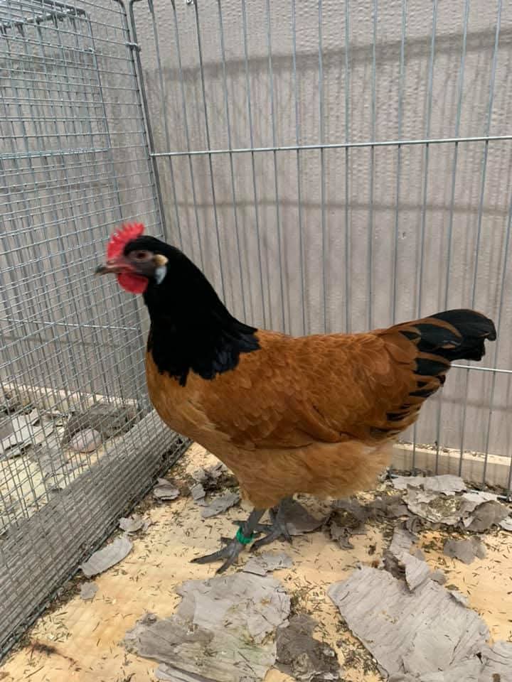 Piumaggio fulvo dorato intenso. Mantellina nera, leggera orlatura fulvo dorato ammessa verso la testa. Remiganti con barbe esterne fulvo dorato intenso e barbe interne grigio-nero mischiato a bruno. Timoniere nere. Copritrici della coda nere con orlatura fulvo dorato. Piumino grigio.